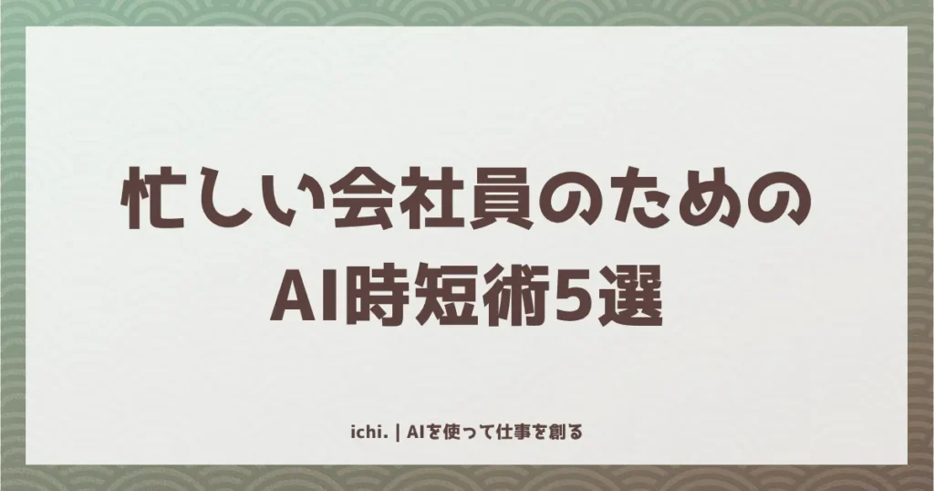 忙しい会社員のためのAI時短術5選:毎日1時間を取り戻す具体的な方法