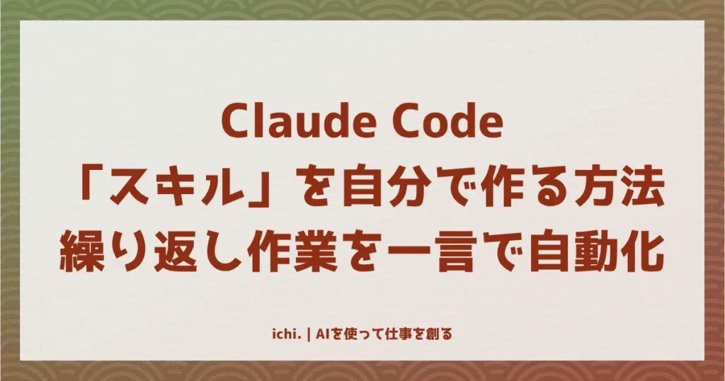 Claude Codeの「スキル」を自分で作る方法:繰り返し作業を一言で自動化
